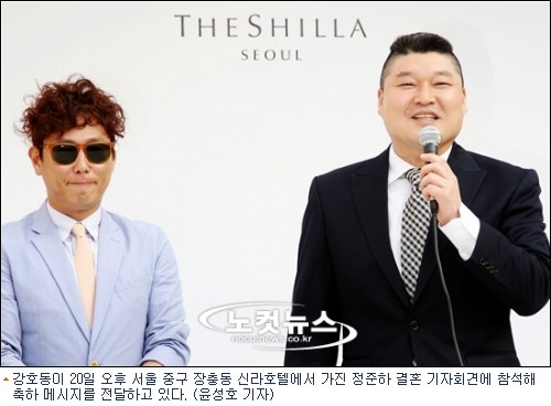 강호동은 20일 오후 6시, 서울 중구 장충동 신라호텔에서 진행된 정준하의 결혼식에 동료가수 윤종신과 함께 참석했다. 강호동이 공식석상에 모습을 드러낸 것은 지난 4월, 가수 겸 방송인 우승민의 결혼식 이후 처음이다.