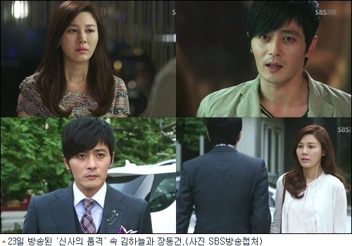 23일 방송된 SBS 주말드라마 ‘신사의 품격’(극본 김은숙, 연출 신우철) 9회에서는 적극적으로 짝사랑을 하던 김도진(장동건)이 서이수(김하늘)에 대한 짝사랑을 중단하고 냉정하고 차가운 모습으로 돌변했다.