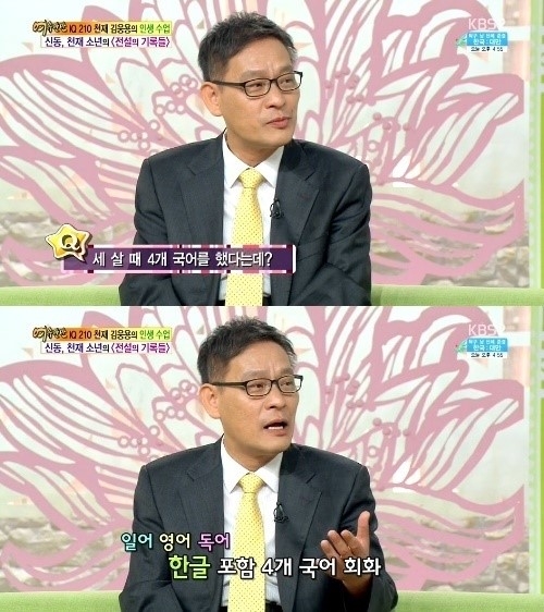 김 교수는 29일 방송된 KBS 2TV ‘여유만만’에 출연해 1세 때 천자문을 통달하고 3세 때 4개 국어를 구사한 사실을 털어놨다.