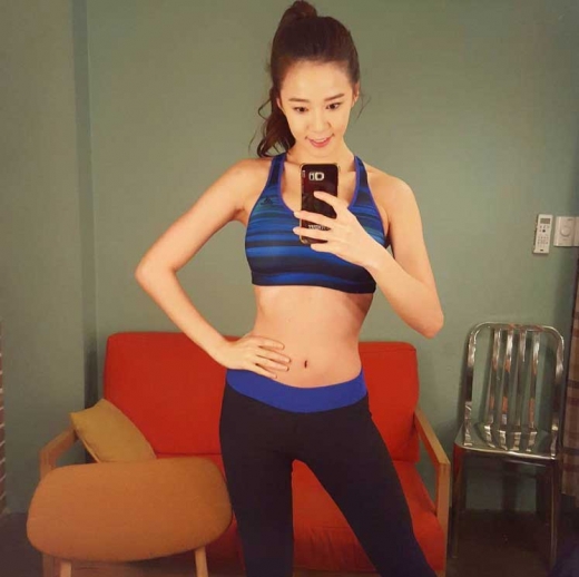 레이양은 최근 자신의 인스타그램에 운동복 차림의 거울 셀카를 올렸다.