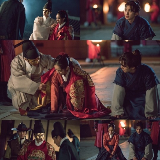 이와 관련 유승호와 김소현, 엘(김명수)이 처음으로 한자리에서 대면, 아슬아슬한 ‘삼각 러브라인’을 가동하는 모습으로 긴장감을 높일 전망이다. 극중 세자와 가은이 무릎을 꿇은 채 왕인 이선 앞에서 엎드려 조아리고 있는 장면. 날카로운 눈빛으로 두 사람을 바라보던 이선은 갑자기 곤룡포를 벗어 가은에게 입혀준 후 가은을 데려가고, 남겨진 세자는 이선의 행동에 당혹스러워한다. 가은을 사이에 두고 세자와 이선이 미묘한 감정 대립을 펼치면서, 과연 세 사람의 ‘운명 로맨스’는 어떻게 전개될지 관심이 모아지고 있다.