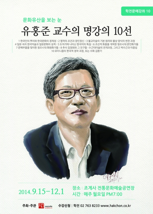 베스트셀러 ‘나의 문화유산답사기’의 저자이자 전 문화재청장 유홍준 교수의 강좌가 ‘유홍준 교수의 명강의 10선’이라는 제목으로 오는 9월 15일부터 12월 1일까지 조계사 전통문화예술공연장에서 진행된다.