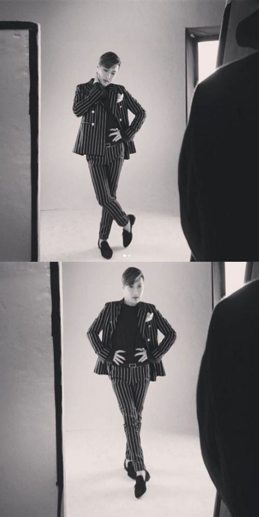 줄무늬 수트를 입고 다양한 포즈를 취하고 있는 그는 진지한 눈빛으로 현장 분위기를 압도하는 듯 보였다.