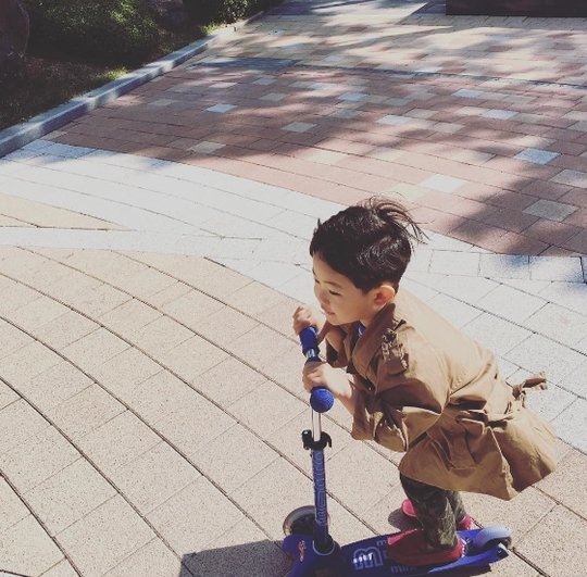 사진에는 퀵보드를 신나게 타고 있는 유지태 김효진 부부의 아들 수인 군의 모습이 담겨 있다. 아빠 유지태를 쏙 빼닮은 훈훈한 외모가 시선을 사로잡았다.